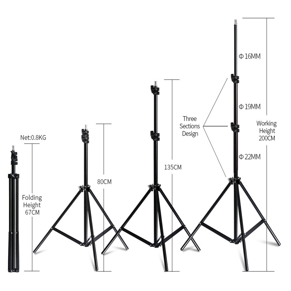 Light stand:Folded height 27inch(68cm), working height 79inch(200cm) High quality,stable and durable,easy to install and use.
